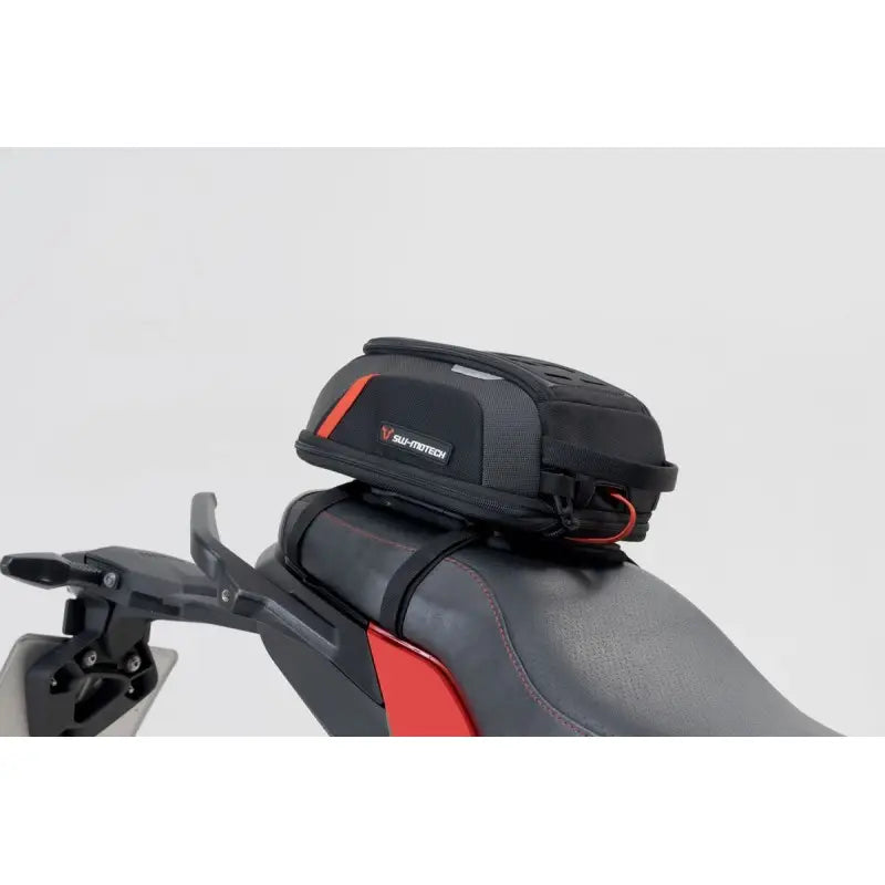 L'anello serbatoio PRO poggia su una piastra in plastica rinforzata con fibra di vetro, che ècollegata ad una base in gomma per una migliore tenuta. Delle cinghie di fissaggio bloccanola piastra sulla sella. Sul Pro Seat Ring puoi fissare le cinque borse serbatoio PRO con fondo diritto: i modelli Micro, Micro WP, Daypack, Sport e Yukon WP trovano qui una tenuta sicura.