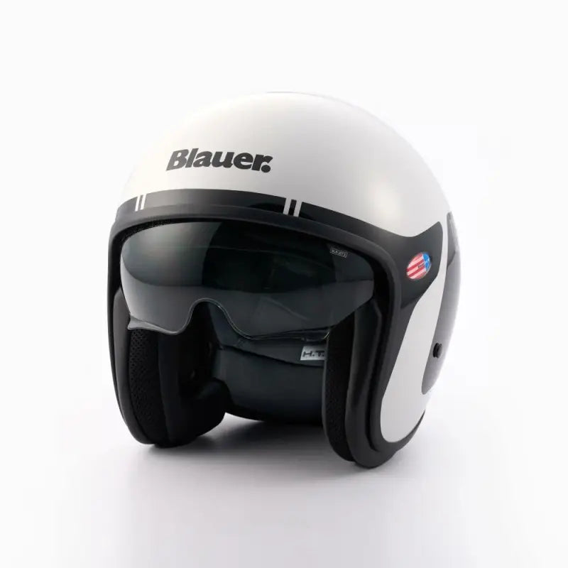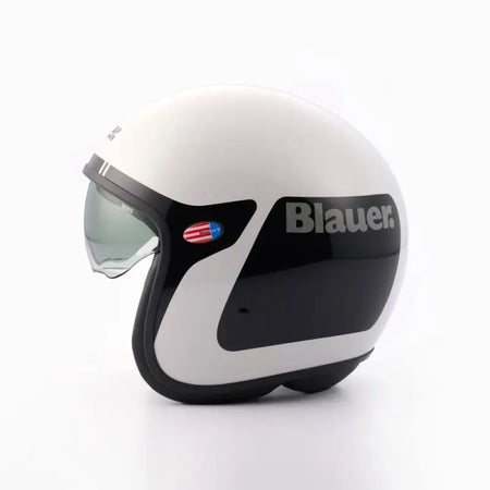 Casco Jet Blauer Pilot 06 Go Grafica Bianco Nero Lucido