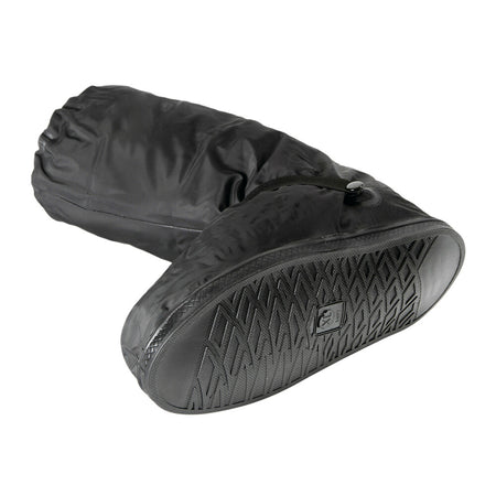 Copriscarpe impermeabile in PVC con suola in gomma anti-scivolo che garantisce stabilità su superfici bagnate e scivolose. La chiusura superiore elasticizzata si adatta perfettamente al polpaccio, mentre la cerniera laterale consente un indossamento rapido e senza sforzo. Dotato di inserto riflettente per una migliore visibilità in condizioni di scarsa luminosità e cuciture nastrate che assicurano massima tenuta all'acqua. Ideale per ambienti umidi, lavori all'aperto e condizioni meteorologiche avverse.