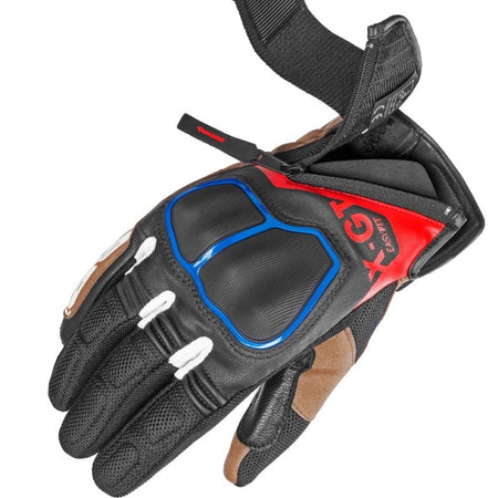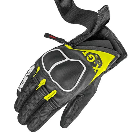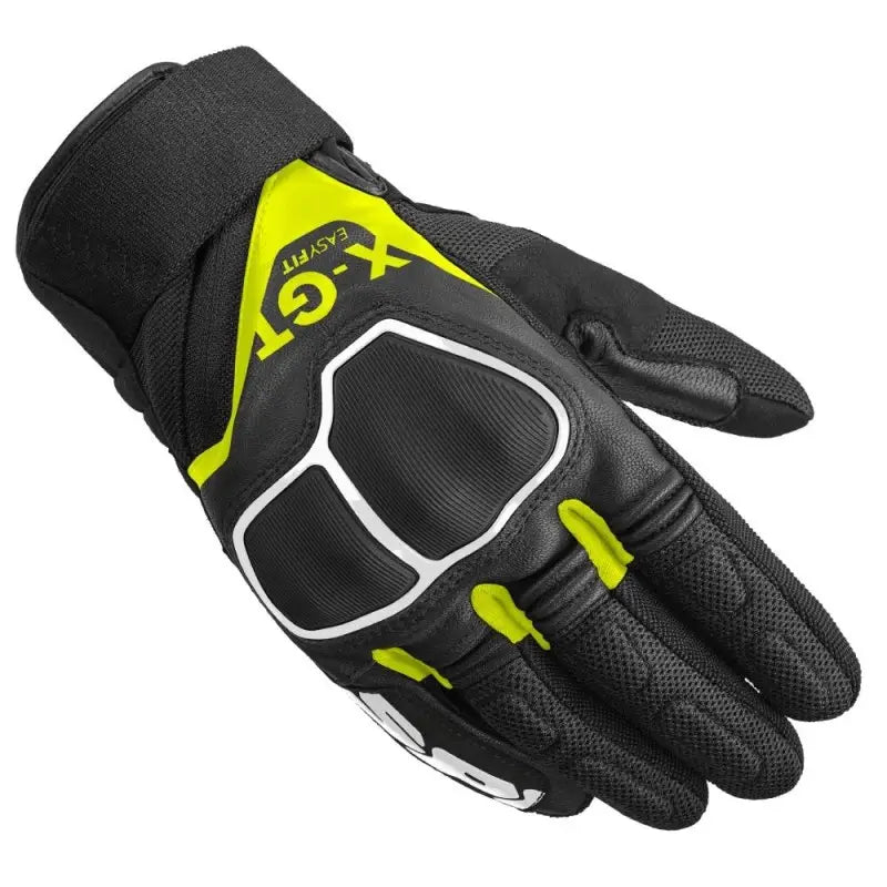 I guanti da turismo SPIDI X-GT rappresentano un ottimo compromesso tra durabilità, protezione e comfort. Il sistema di chiusura è Easy-Fit , caratterizzato dalla combinazione tra un'ampia banda elastica dotata di velcro ed una chiusura diagonale con zip: questo migliora notevolmente sia le operazioni di chiusura che quelle di apertura, un grande vantaggio in molte situazioni, soprattutto in caso di temperature elevate. I guanti X-GT sono costruiti utilizzando pelle caprina di spessore 0,6/0,8 mm e rete ad alta resistenza, un mix di materiali che garantiscono resistenza all'abrasione ed elasticità, oltre che ventilazione nelle giornate più calde. Sono certificati secondo normativa EN13594:2015 KP. Il dorso e il palmo sono accoppiati con elementi multistrato nei punti più soggetti all'abrasione, con doppi strati di pelle nei punti laterali e con protezione nocche rigide della serie Warrior che hanno permesso di raggiungere la certificazione in classe KP. I guanti sono compatibili con schermi touch.