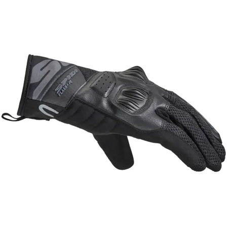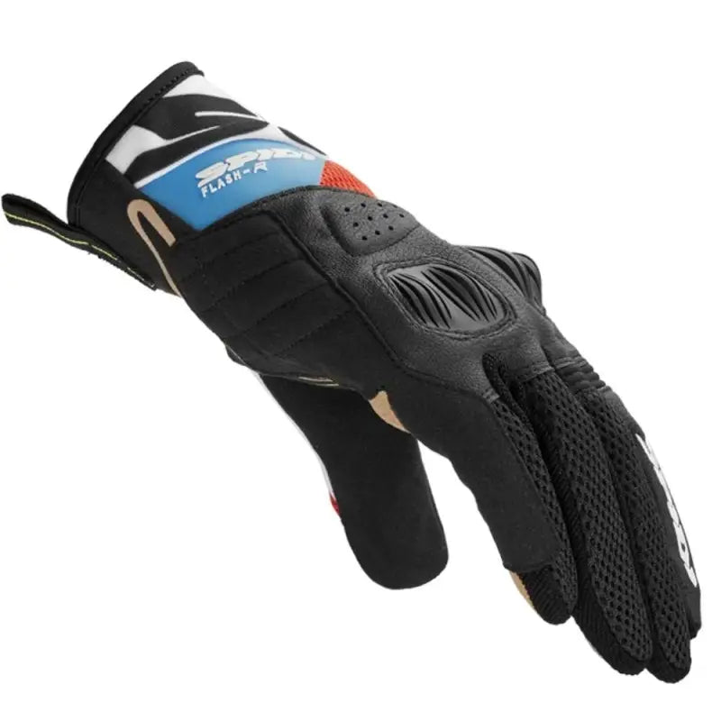 I guanti in tessuto Flash-R Evo di SPIDI, progettati per moto sportive in climi caldi, certificato EN 13594:2015 liv.1 per la sicurezza. Con rete traspirante, imbottiture e scudo in poliuretano, offre comfort e performance, pesando solo 0,1 kg, e sono compatibili con touchscreen, garantendo una protezione avanzata e una sensazione di freschezza durante l'uso.