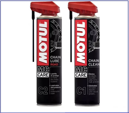 KIT PULIZIA LUBRIFICAZIONE GRASSO CATENA MOTO MOTUL CHAIN LUBE ROAD C1+C2