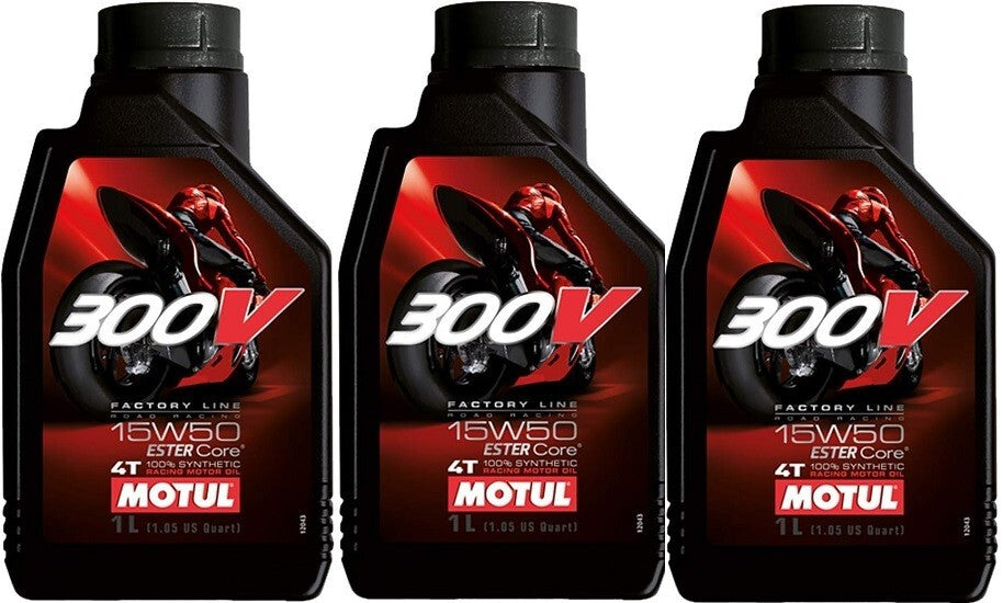 Olio motore Motul 300V 15W50, formulazione 100% sintetica concepita per motociclisti da competizione. Integra la tecnologia proprietaria ESTER CORE® che massimizza la potenza erogata dal motore preservando affidabilità strutturale e contenendo l'usura dei componenti. La combinazione strategica di esteri sintetici premium con un pacchetto additivo innovativo assicura protezione ottimale per motore, cambio e frizione in condizioni di stress estremo. Viscosità 15W50 per applicazioni che richiedono film protettivo robusto a temperature elevate.