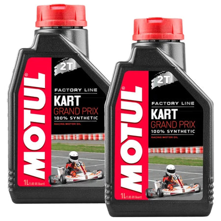 Olio motore Motul Kart Grand Prix 2T, lubrificante 100% sintetico a base estere sviluppato specificamente per motori kart 2 tempi da competizione. Formulato per operare fino a 23.000 giri/min, garantisce protezione estrema in condizioni di stress termico e meccanico intenso. Compatibile con tutti i tipi di carburante e adatto a sistemi di lubrificazione premiscelata su motori ROTAX, ATK, PARILLA, PCR, YAMAHA, ItalSystem, TM e similari. Prestazioni racing affidabili per chi ricerca il massimo dalle proprie prestazioni in pista.