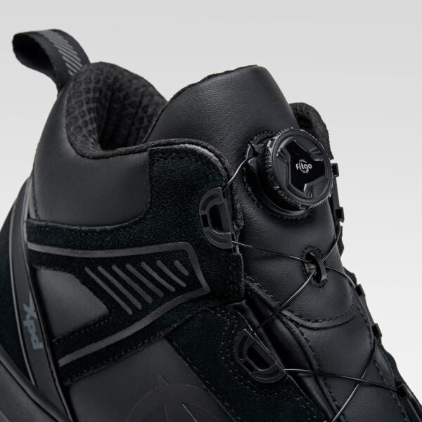 Scarpe con tomaia in pelle, suola Michelin® a doppia densità e supporto tallone H.S.S., dotate di protezione cambio e chiusura microregolabile. Interno con membrana H2OUT® impermeabile, protezioni per la caviglia, soletta Ortholite® traspirante e ammortizzante.