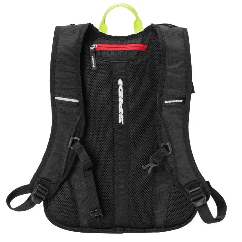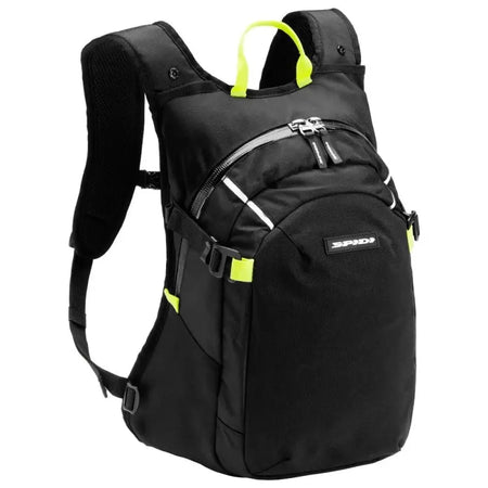 SPIDI Tour Pack è stato progettato per l'uso in moto. Costruito con l'utilizzo di un mix resistente di Nylon e Poliammide, è stato progettato nei minimi dettagli per soddisfare le esigenze dei motociclisti: la doppia chiusura permette di ottimizzare l'aerodinamica ed il comfort, mentre la copertura impermeabile a scomparsa garantisce di mantenere lo zaino all'asciutto in caso di pioggia. Per ottenere un'alta durabilità sono state utilizzate zip metalliche impermeabili YKK®; i dettagli reflex 3M® aumentano la visibilità notturna.